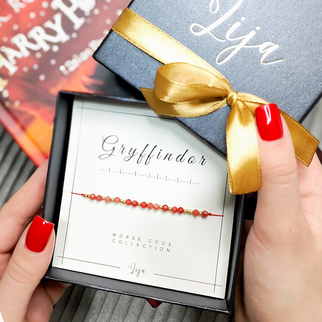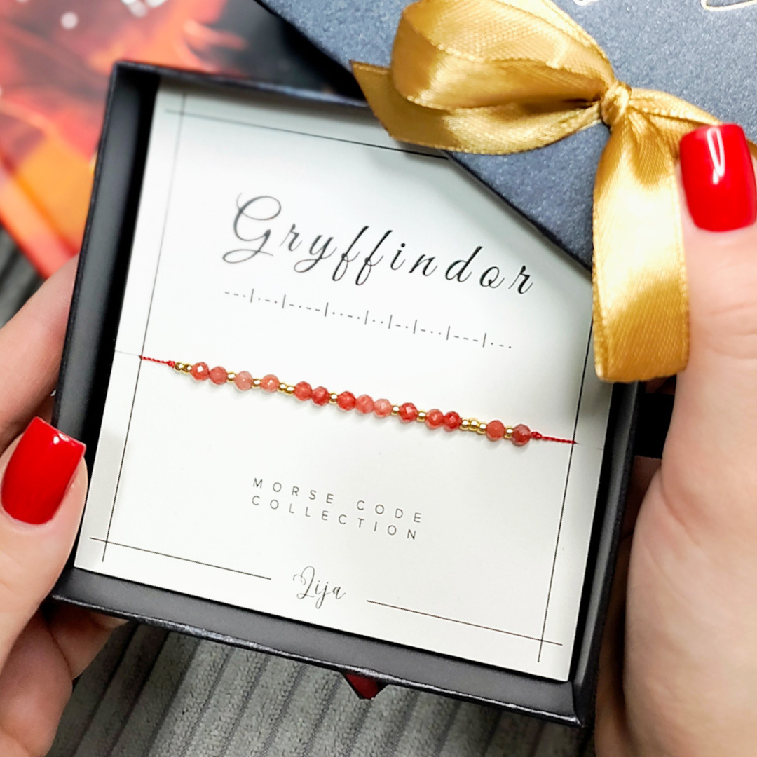 Bransoletka GRYFFINDOR - Jadeit - Alfabet Morse'a