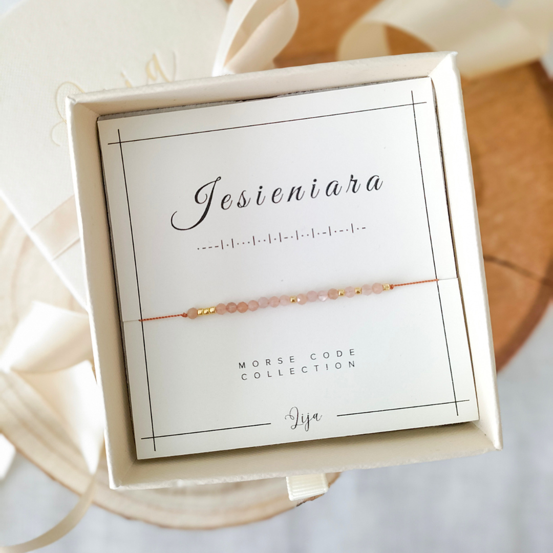 Bransoletka JESIENIARA - Kamień słoneczny - Alfabet Morse'a