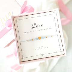 Bransoletka LOVE - Akwamaryn - z serduszkiem