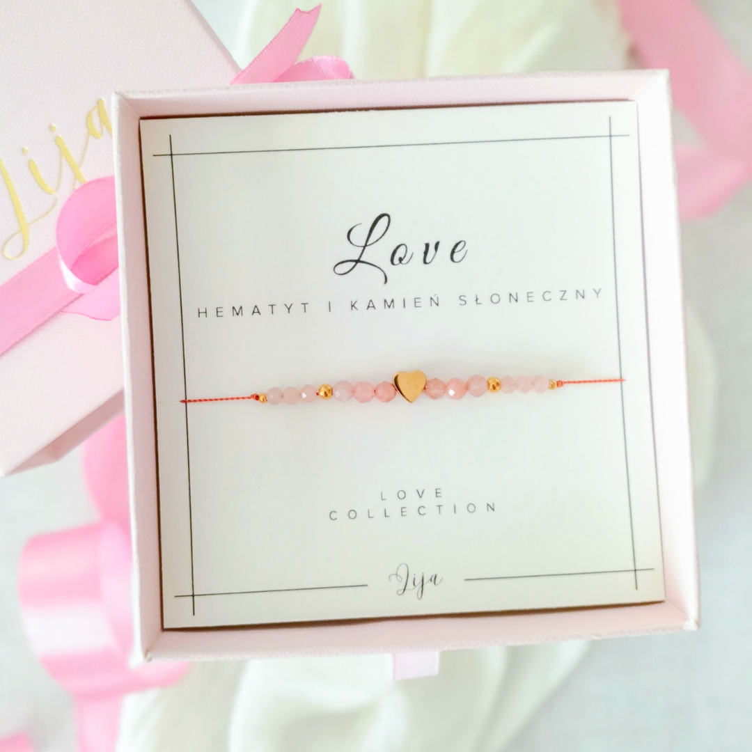 KOLEKCJA MIŁOSNA (Love Collection) to bransoletki stworzone z kamieni naturalnych z hematytowym serduszkiem w centralnej części będącym symbolem miłości. Idealny prezent zarówno na Walentynki, jak i na każdą inną okazję, kiedy chcemy wyrazić swoją miłość.