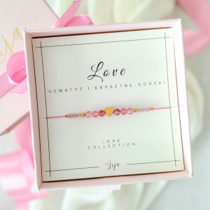 Bransoletka LOVE - Kryształ górski truskawkowy - z serduszkiem