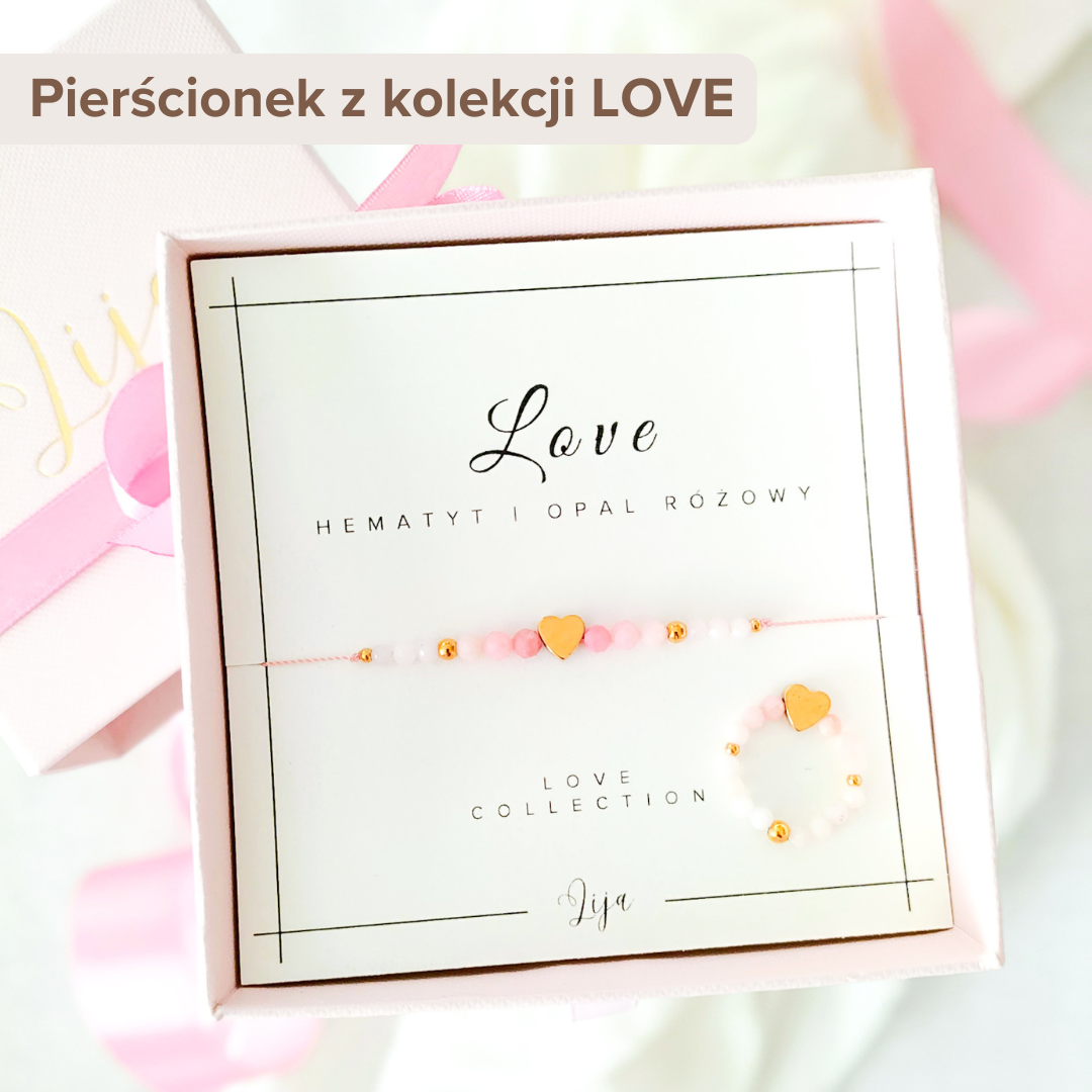 KOLEKCJA MIŁOSNA (Love Collection) to bransoletki stworzone z kamieni naturalnych z hematytowym serduszkiem w centralnej części będącym symbolem miłości. Idealny prezent zarówno na Walentynki, jak i na każdą inną okazję, kiedy chcemy wyrazić swoją miłość.