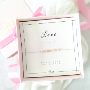 Bransoletka LOVE - Opal różowy - Alfabet Morse'a