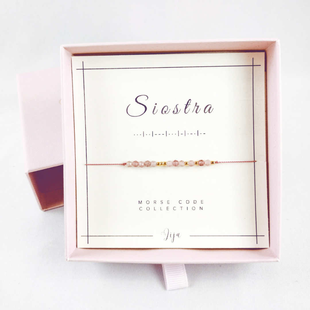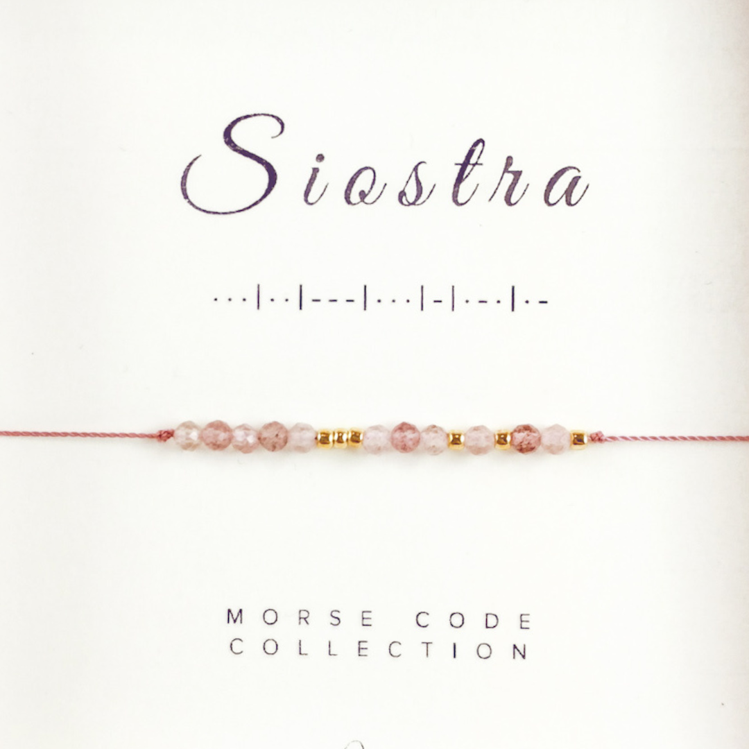 Bransoletka SIOSTRA - Kryształ górski truskawkowy - Alfabet Morse'a