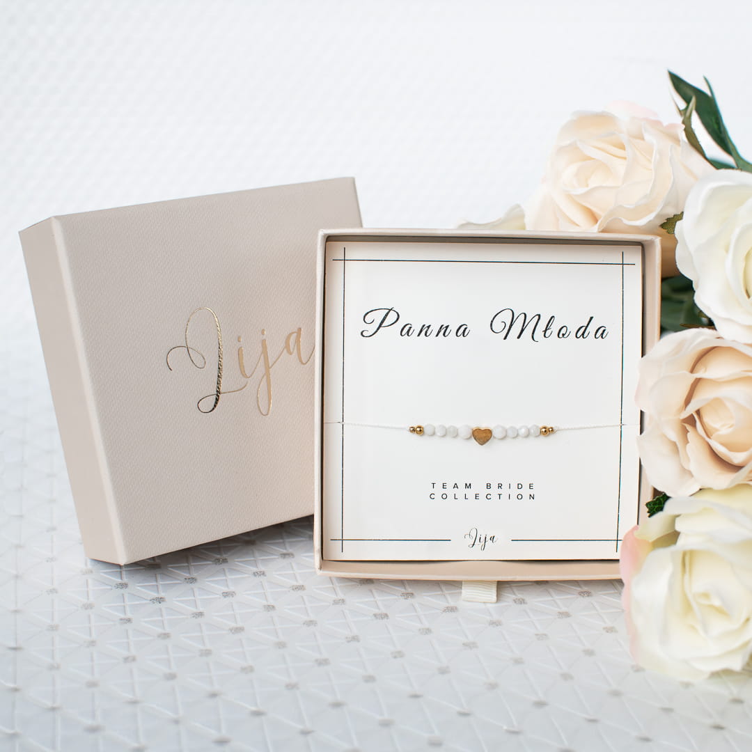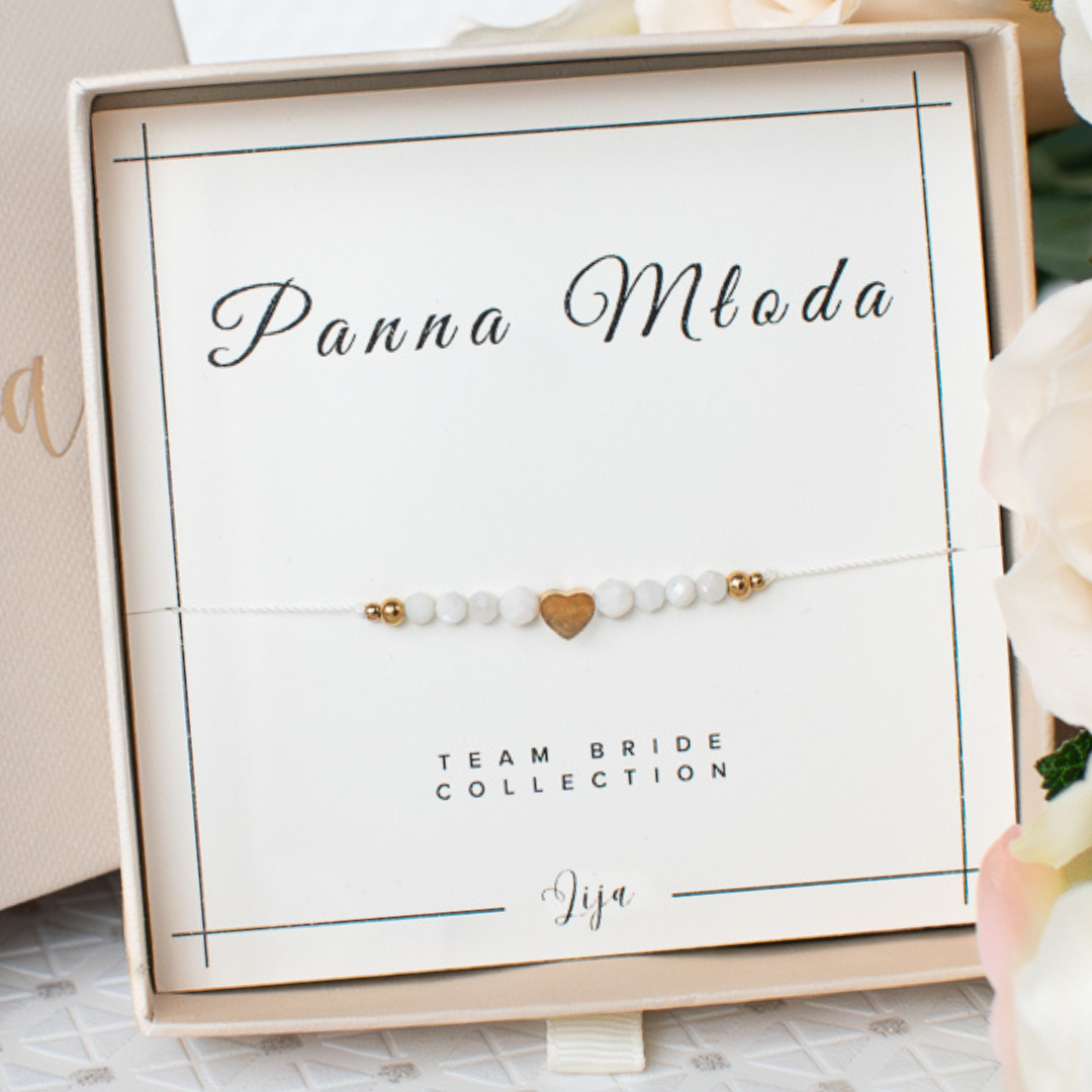 KOLEKCJA DLA (PRZYSZŁEJ) PANNY MŁODEJ (Team Bride Collection) to bransoletki stworzone z kamieni naturalnych oraz hematytowego serduszka. Jest to wspaniały pomysł na prezent na wieczór panieński zarówno dla Panny Młodej, jak i dla pozostałych uczestniczek wieczoru.