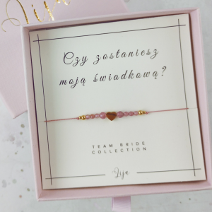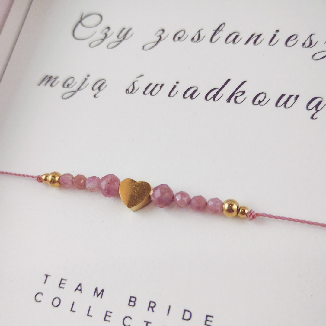 Bransoletka dla przyszłej Świadkowej z turmalinem różowym i serduszkiem - Czy zostaniesz moją świadkową?