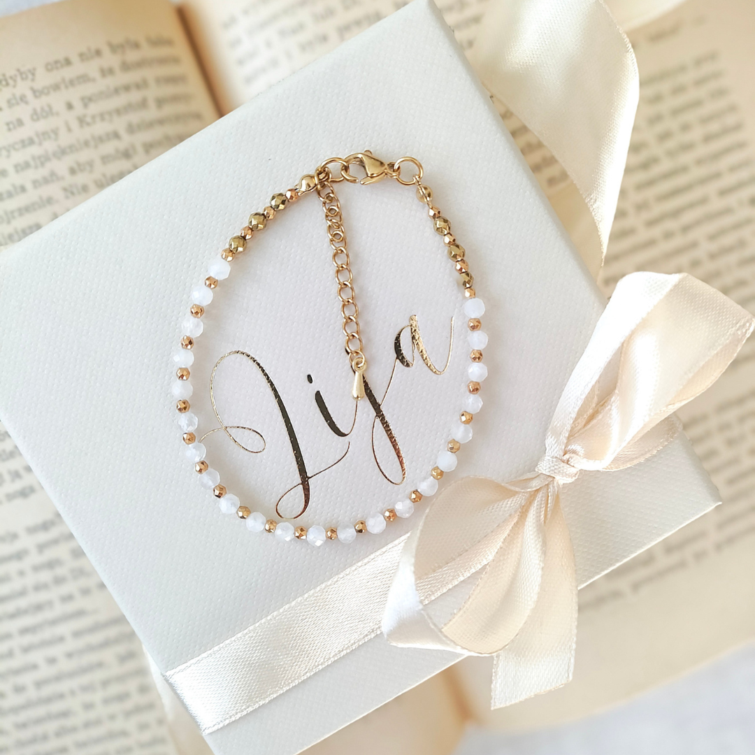 Bransoletka na Dzień Nauczyciela – tyle kamieni ilu uczniów – kamień księżycowy - spersonalizowany prezent, podziękowanie dla nauczycielki
