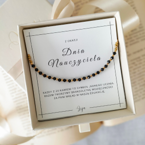KOLEKCJA WDZIĘCZNOŚĆ (Gratitude Collection) gdzie każdy kamień symbolizuje jedno dziecko – razem tworzą niepowtarzalną bransoletkę, będącą podziękowaniem za serce, cierpliwość i trud włożony w edukację oraz wychowanie. To nie tylko biżuteria, ale przede wszystkim wzruszająca pamiątka, która przypomina nauczycielce, że każdy jej wysiłek miał znaczenie i zostawił trwały ślad w życiu uczniów. Bransoletka z kolekcji Wdzięczność sprawdzi się idealnie jako prezent na Dzień Nauczyciela lub na zakończenie roku szkolnego, kiedy uczniowie chcą wyrazić swoją wdzięczność w wyjątkowy sposób.