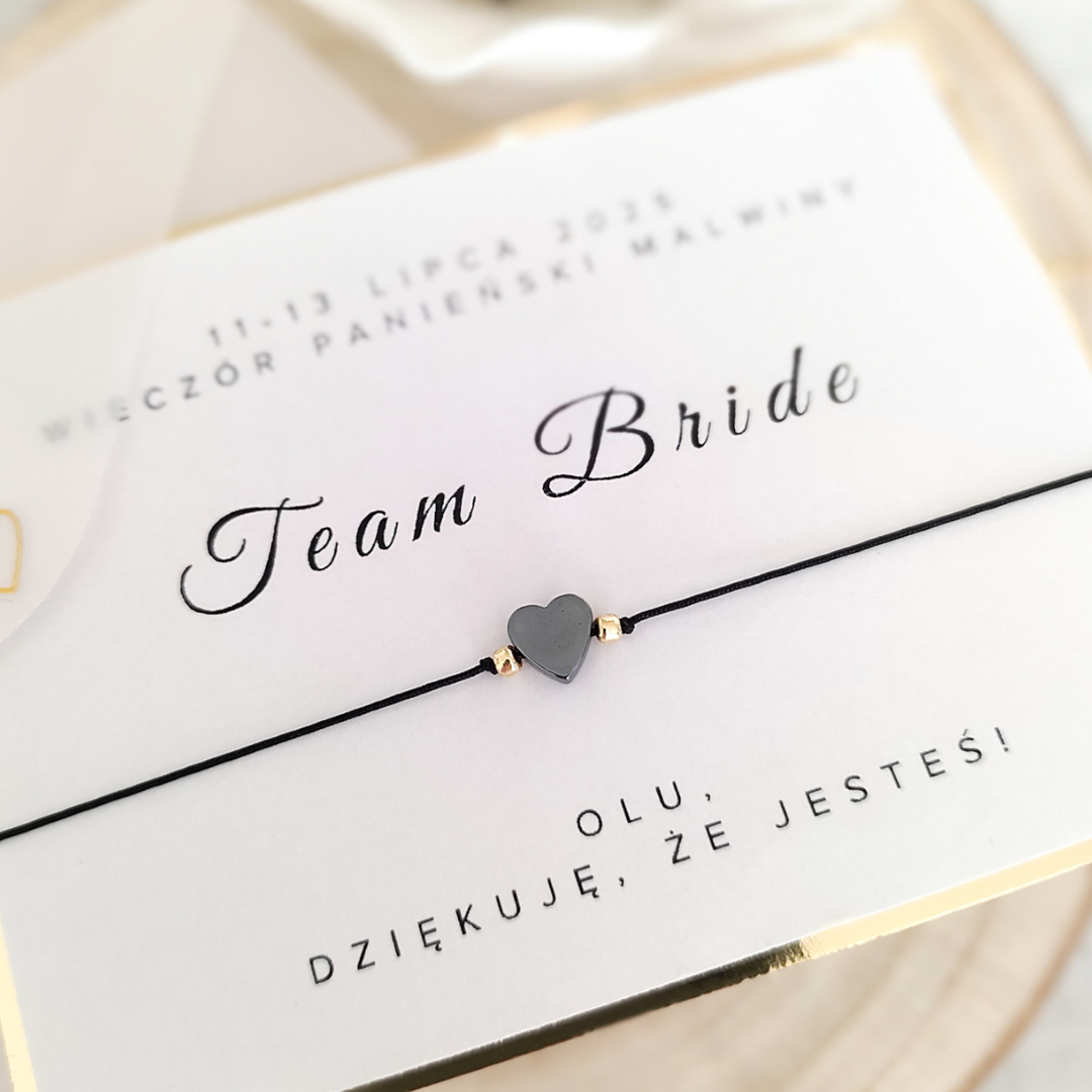 Bransoletka na wieczór panieński z HEMATYTEM czarnym - serce - Team Bride