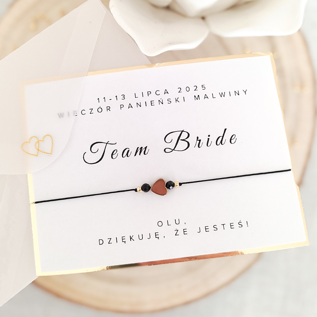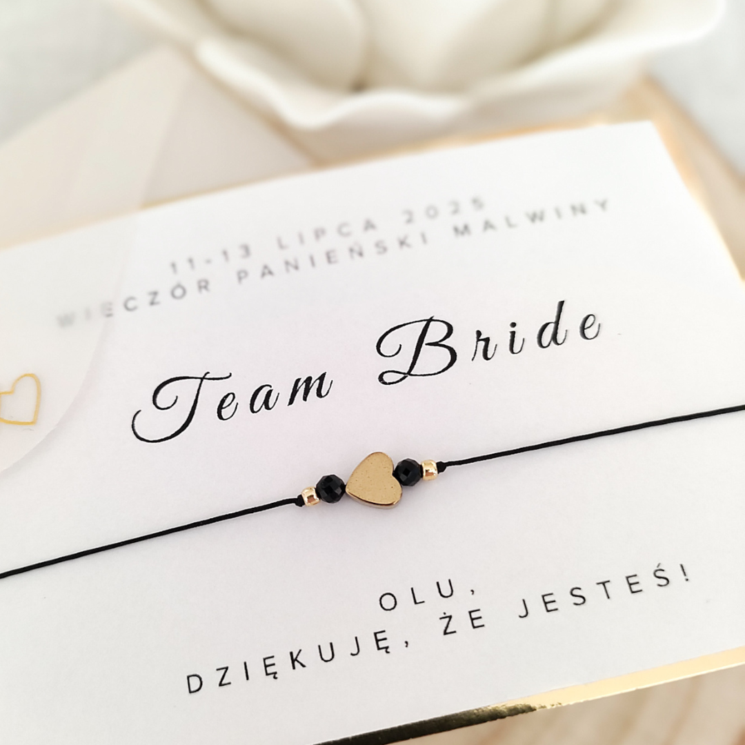Bransoletka na wieczór panieński z HEMATYTEM i TURMALINEM CZARNYM - serce - Team Bride