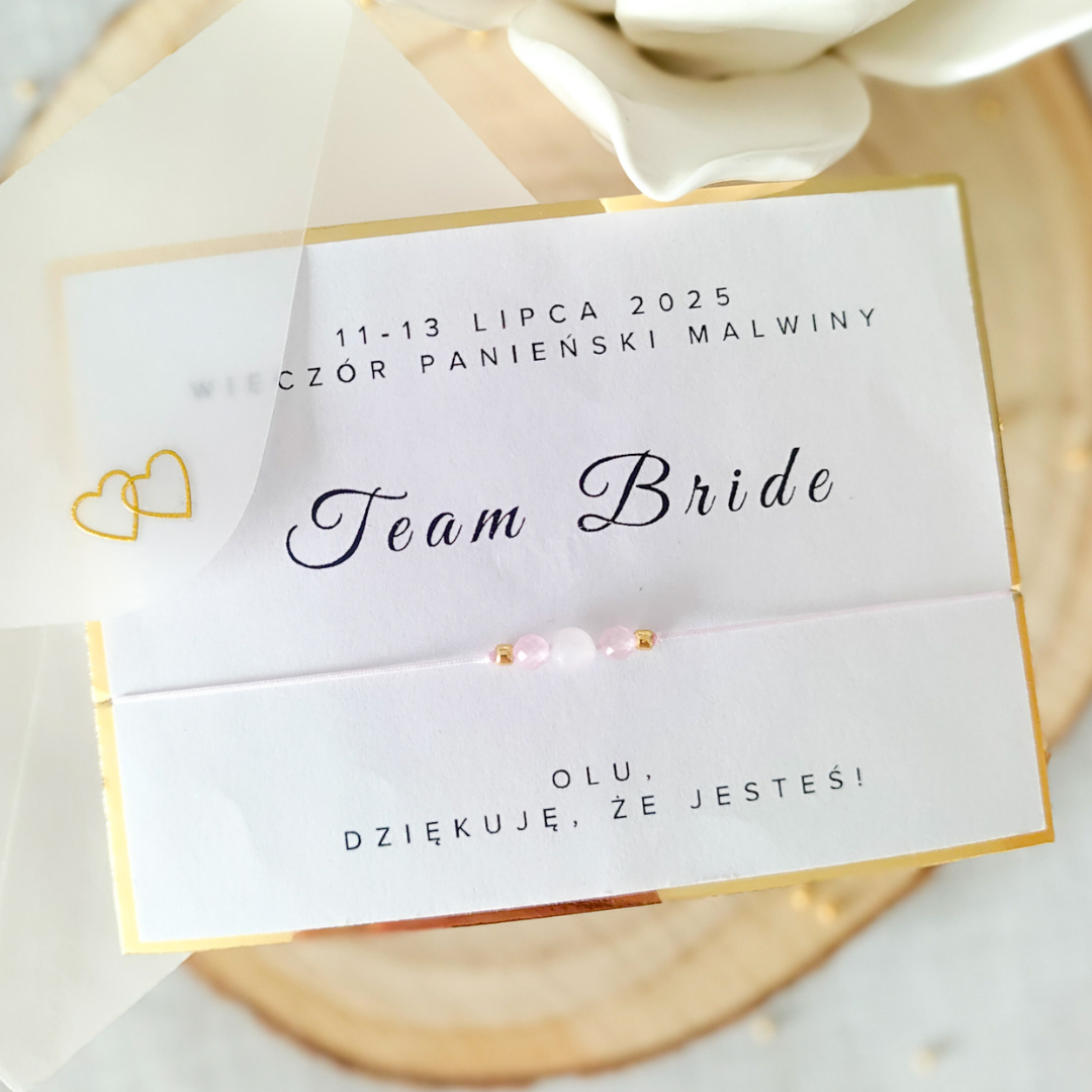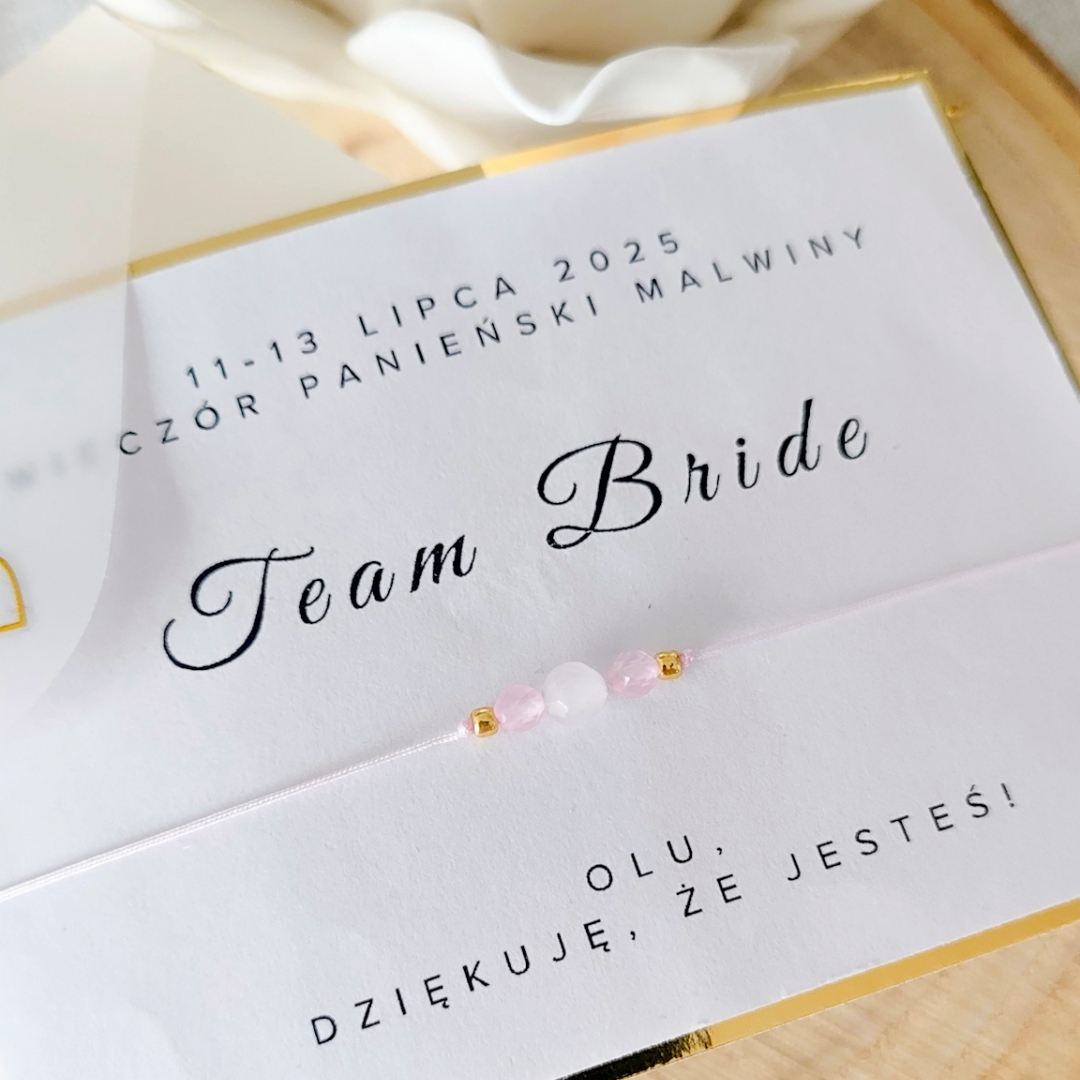 Bransoletka na wieczór panieński z KWARCEM RÓŻOWYM - Team Bride