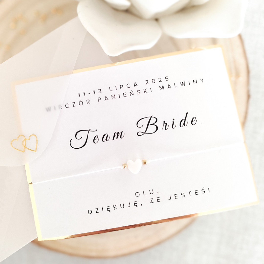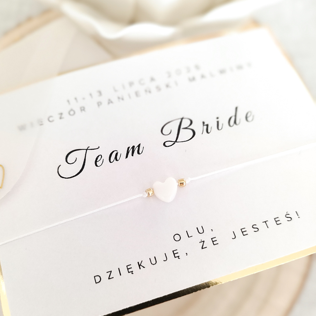Bransoletka na wieczór panieński z MASĄ PERŁOWĄ - serce - Team Bride