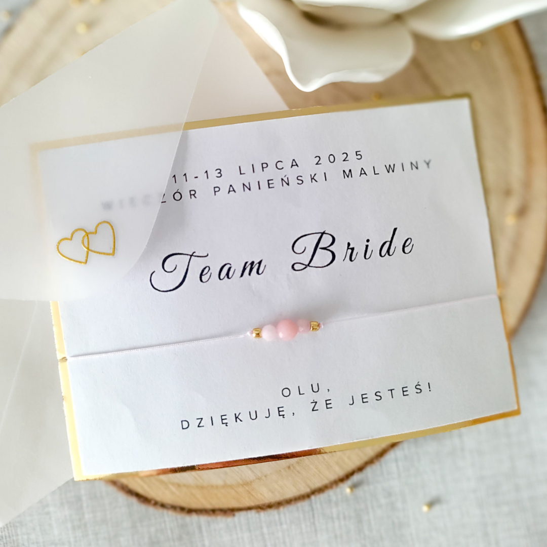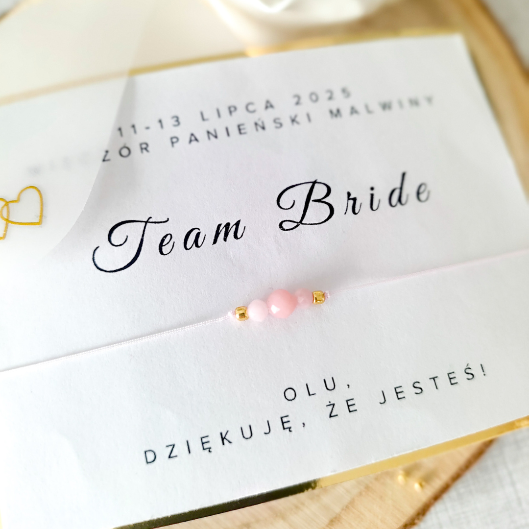 Bransoletka na wieczór panieński z OPALEM RÓŻOWYM - Team Bride