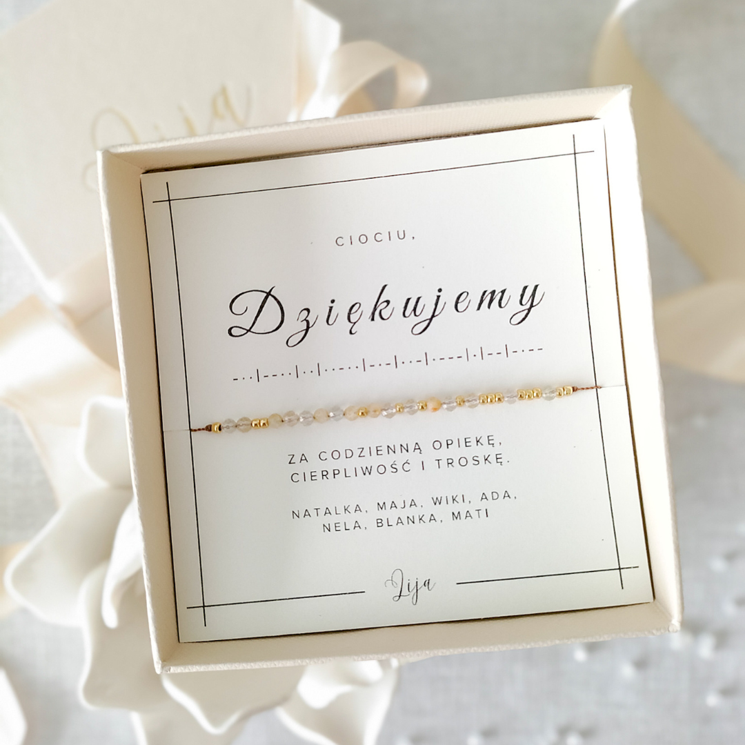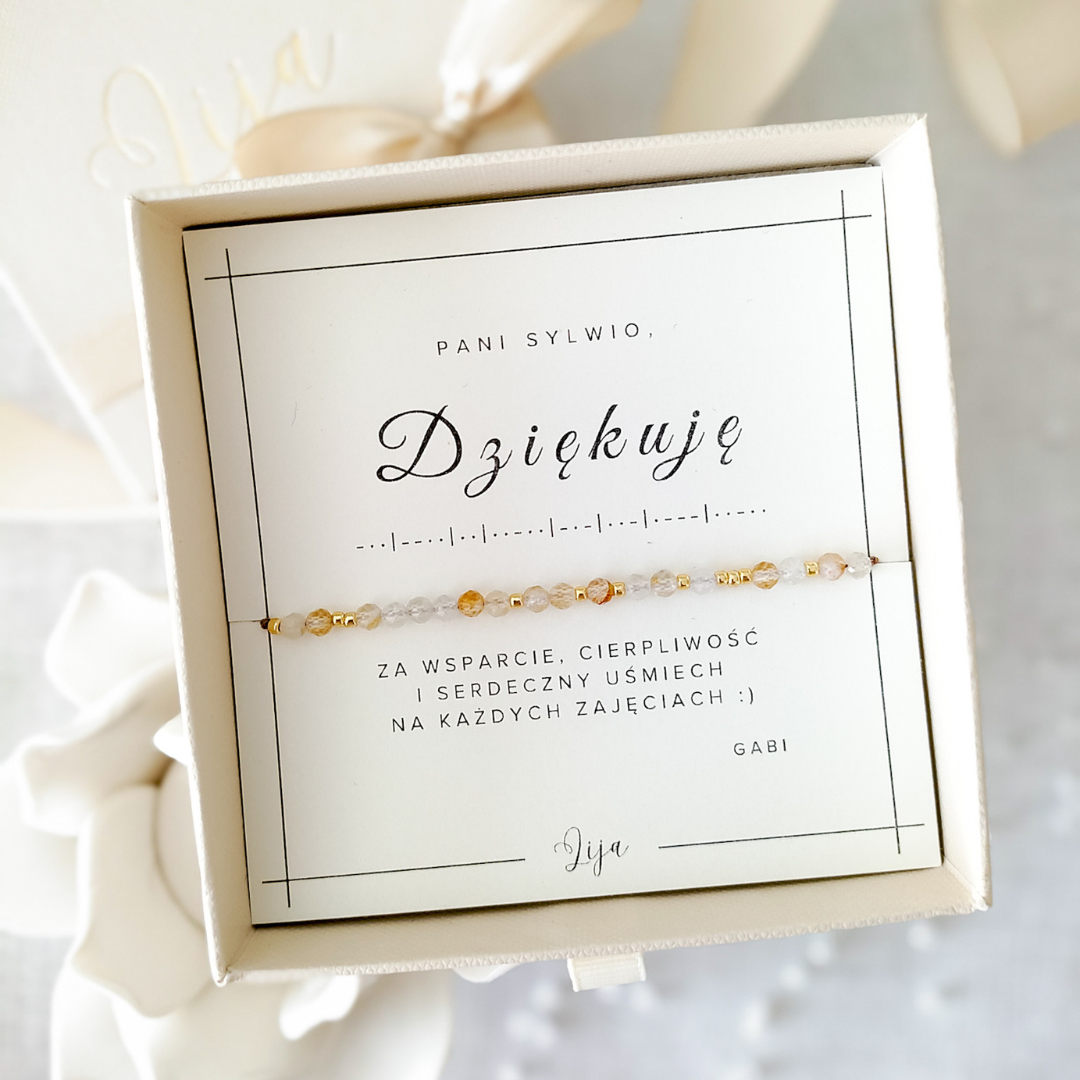 Bransoletka z cytrynem DZIĘKUJĘ/DZIĘKUJEMY kodowana alfabetem Morse’a – prezent dla nauczycielki, pani z przedszkola lub cioci ze żłobka – Dzień Nauczyciela, zakończenie roku