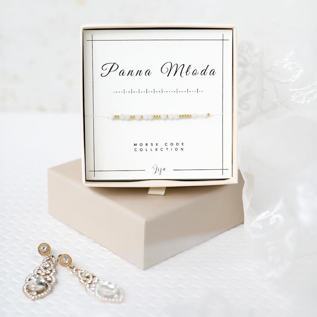 Bransoletka z kamieniem księżycowym - słowo kodowane alfabetem Morse'a - Panna Młoda
