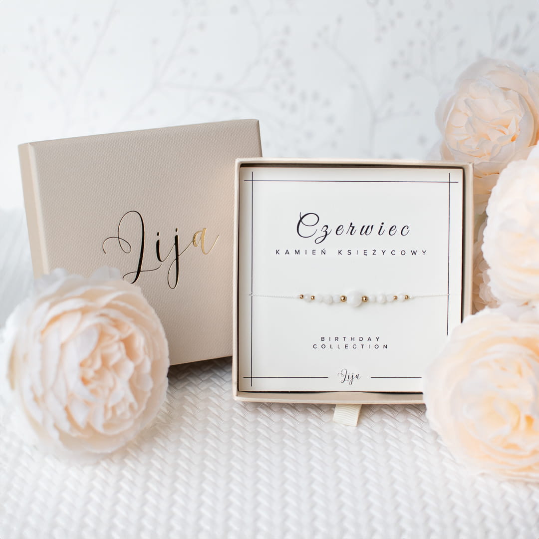 Bransoletka z kamieniem urodzinowym - Czerwiec - Kamień księżycowy - z okazji urodzin