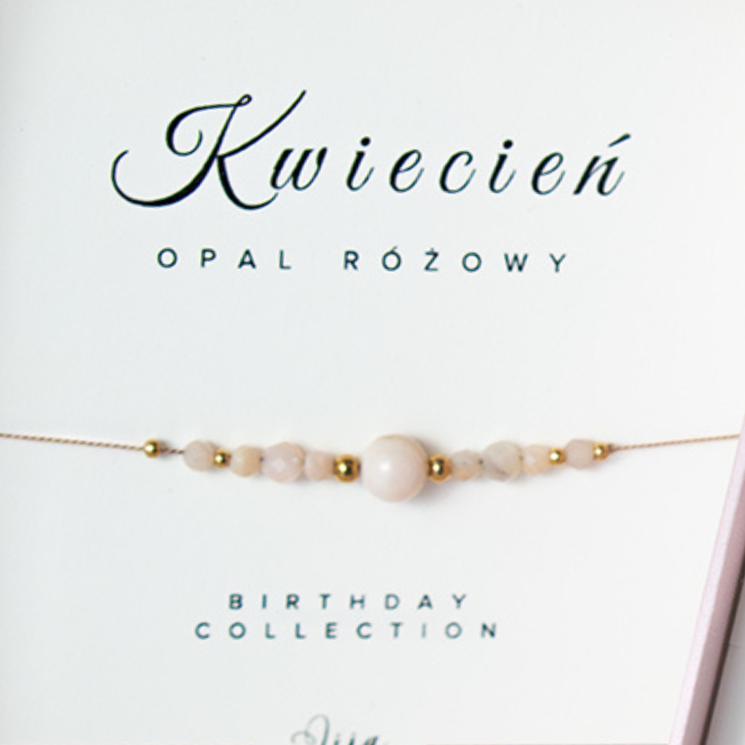 Bransoletka z kamieniem urodzinowym - Kwiecień - Opal różowy (beżowy) - z okazji urodzin