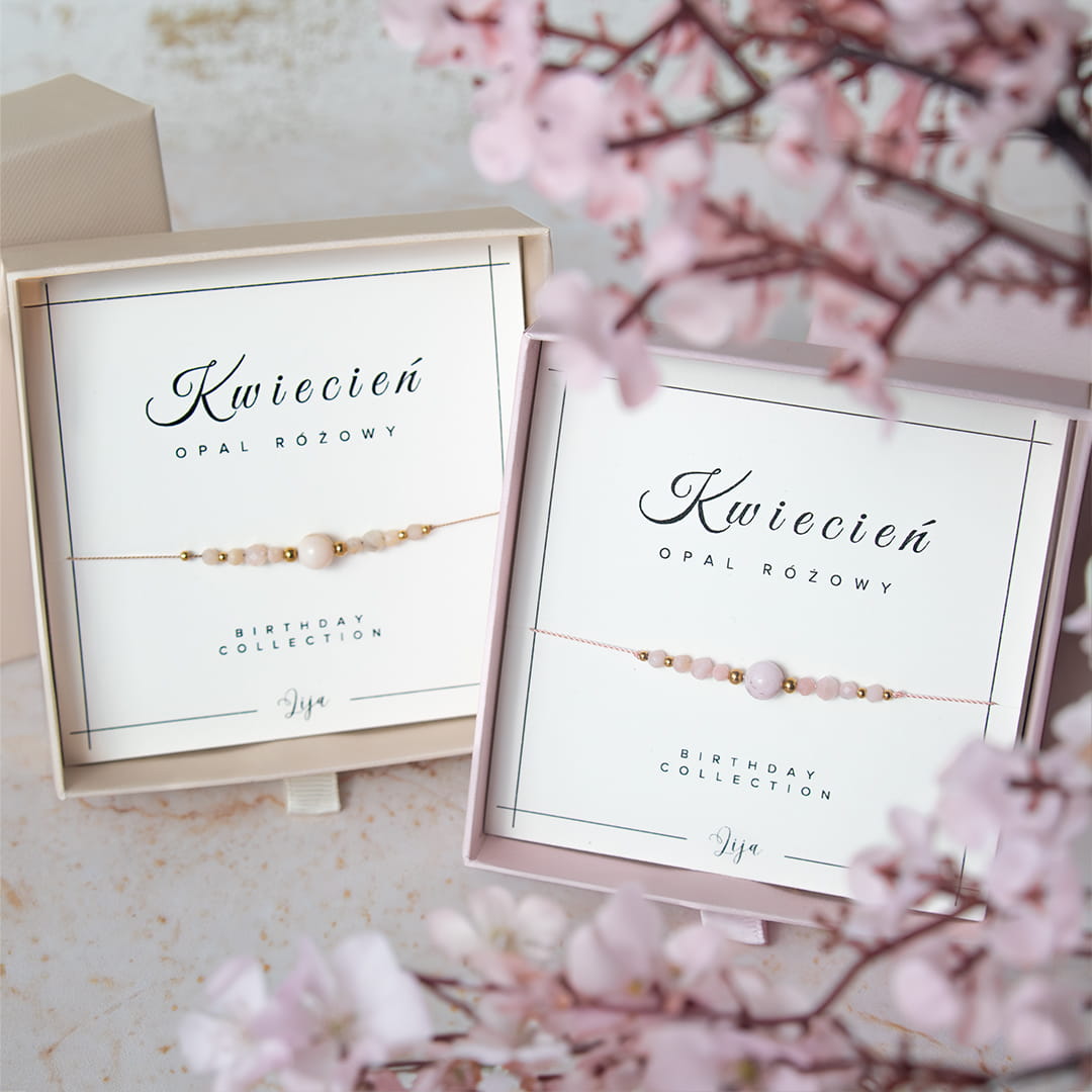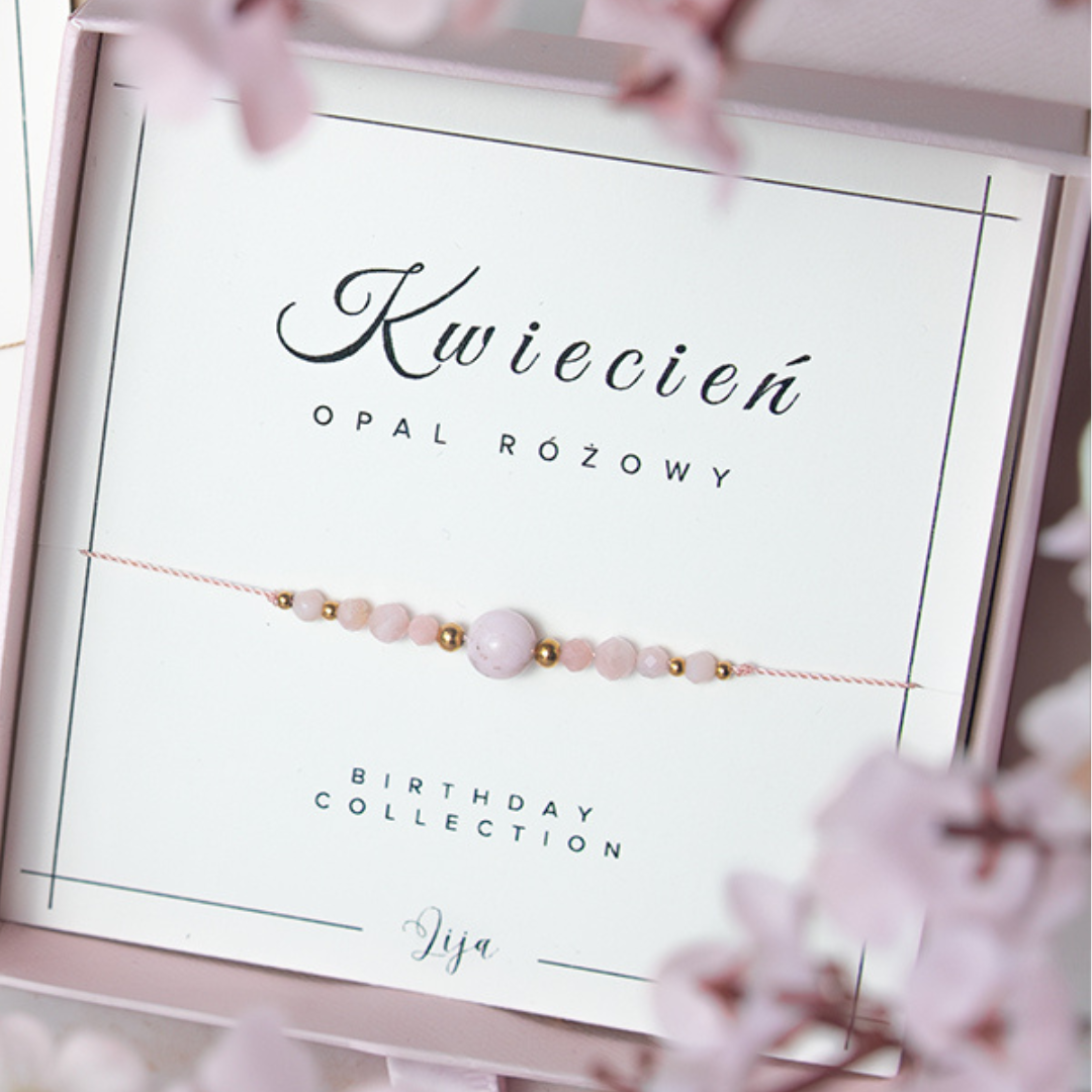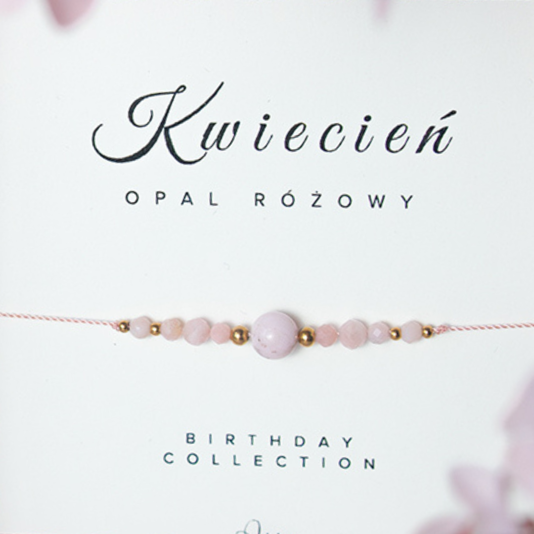 Bransoletka z kamieniem urodzinowym - Kwiecień - Opal różowy (różowy) - z okazji urodzin