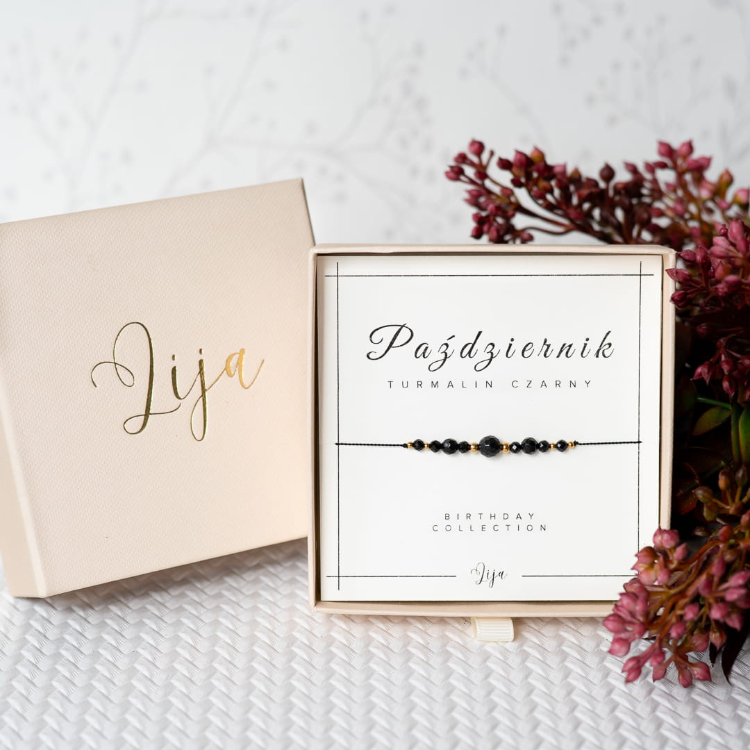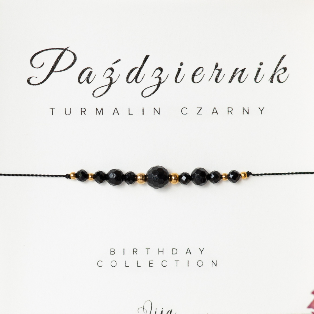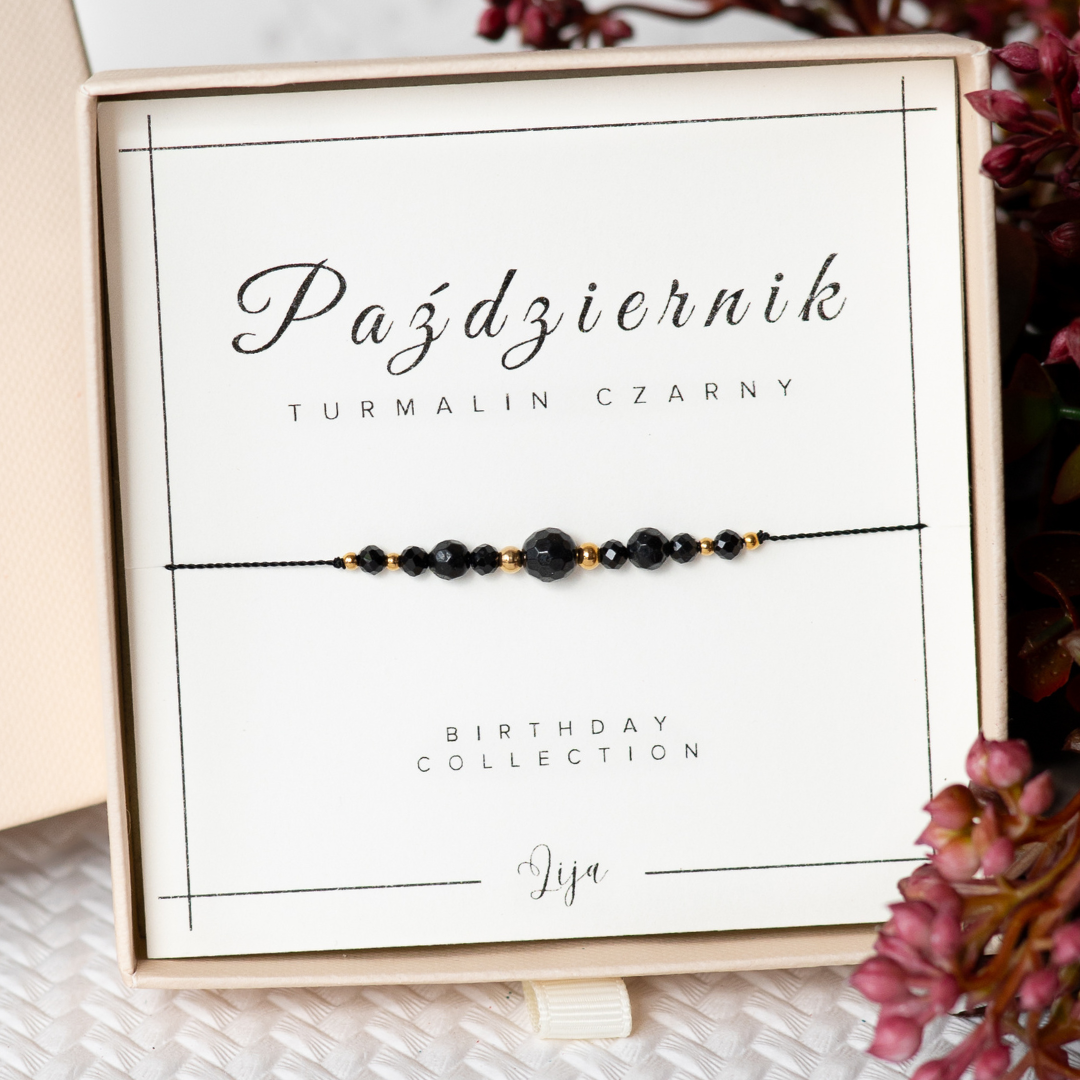 Bransoletka z kamieniem urodzinowym - Październik - Turmalin czarny - z okazji urodzin