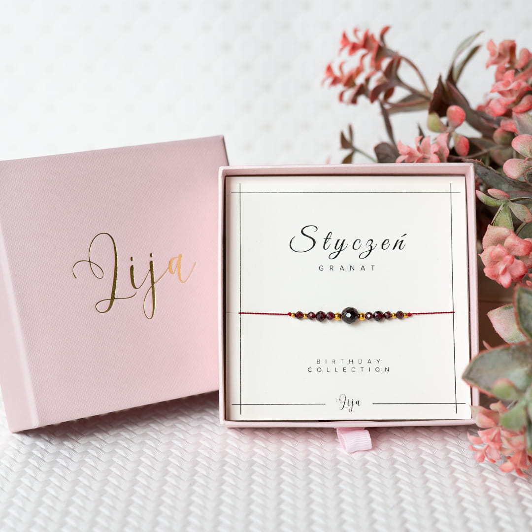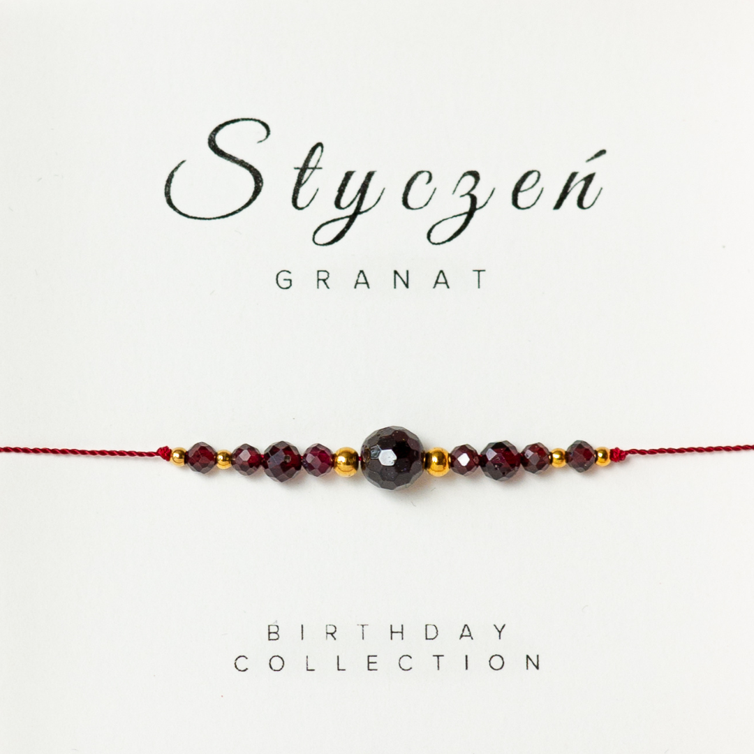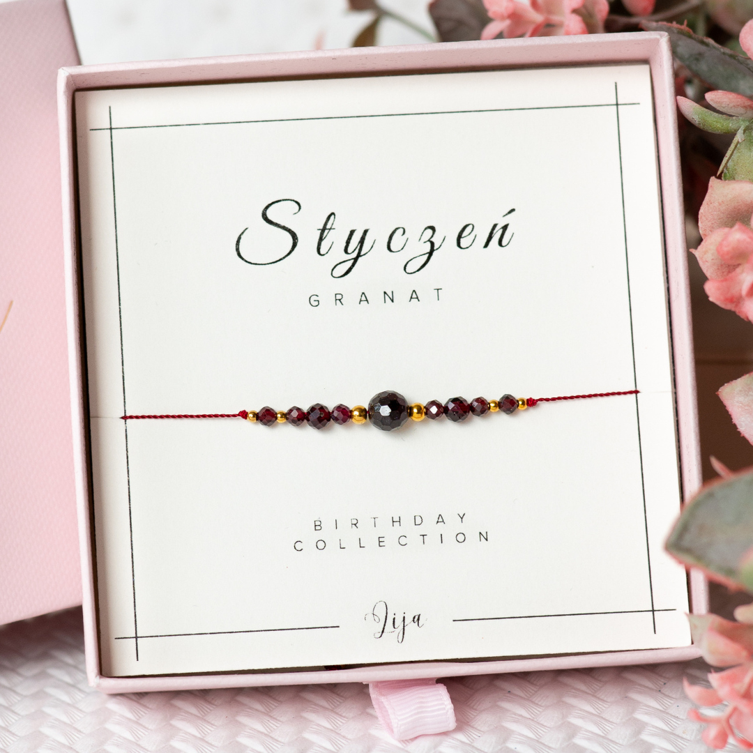 Bransoletka z kamieniem urodzinowym - Styczeń - Granat - z okazji urodzin