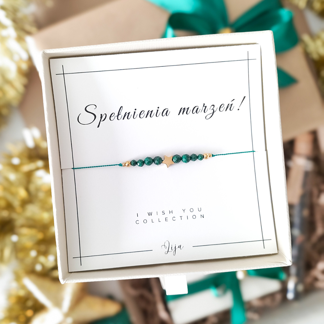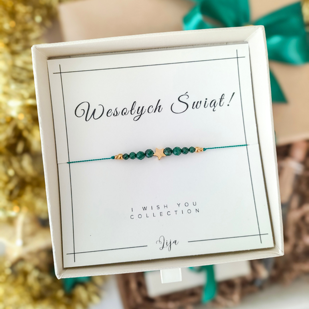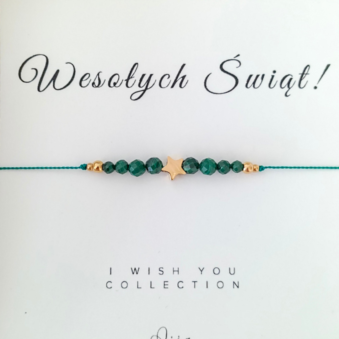 Bransoletka z malachitem i gwiazdką - WESOŁYCH ŚWIĄT - Prezent na Święta