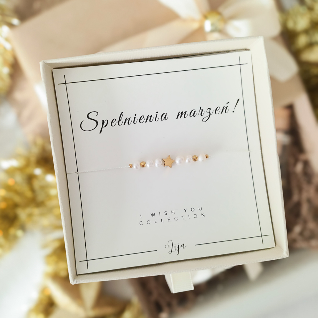KOLEKCJA ŻYCZĘ CI (I Wish You Collection) to bransoletki stworzone z kamieni naturalnych oraz gwiazdki. Jest to wspaniały pomysł na prezent urodzinowy, imieninowy, jak i pod choinkę.