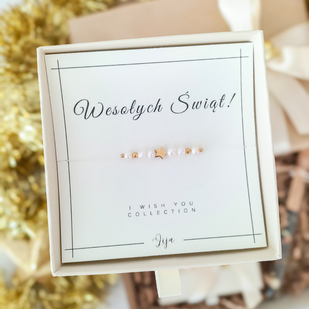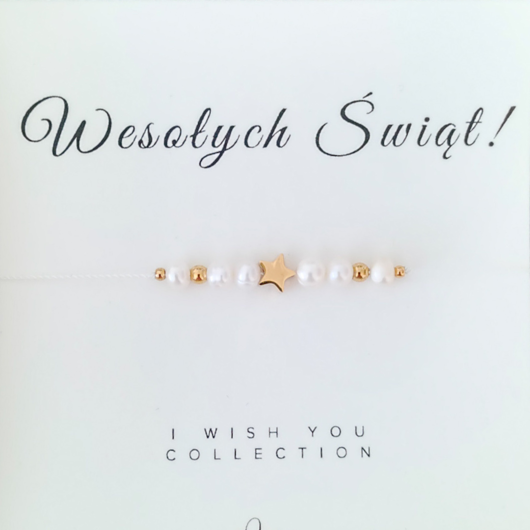 Bransoletka z perełkami i gwiazdką - WESOŁYCH ŚWIĄT - Prezent na Święta