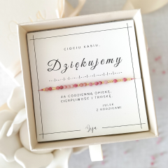 Bransoletka z rodonitem DZIĘKUJĘ/DZIĘKUJEMY kodowana alfabetem Morse’a – prezent dla nauczycielki, pani z przedszkola lub cioci ze żłobka – Dzień Nauczyciela, zakończenie roku