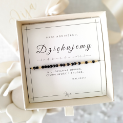 Bransoletka z turmalinem czarnym DZIĘKUJĘ/DZIĘKUJEMY kodowana alfabetem Morse’a – prezent dla nauczycielki, pani z przedszkola lub cioci ze żłobka – Dzień Nauczyciela, zakończenie roku w przedszkolu i żłobku