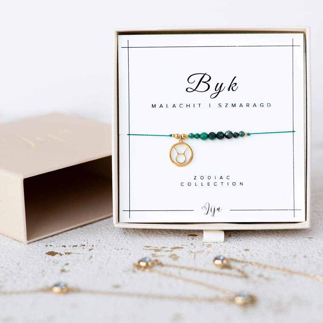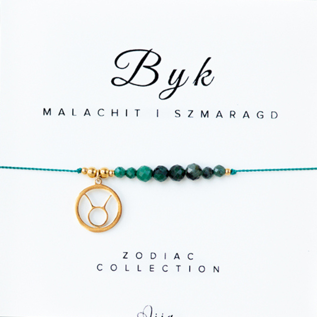 Bransoletka zodiakalna Byk - Malachit, Szmaragd - znak zodiaku
