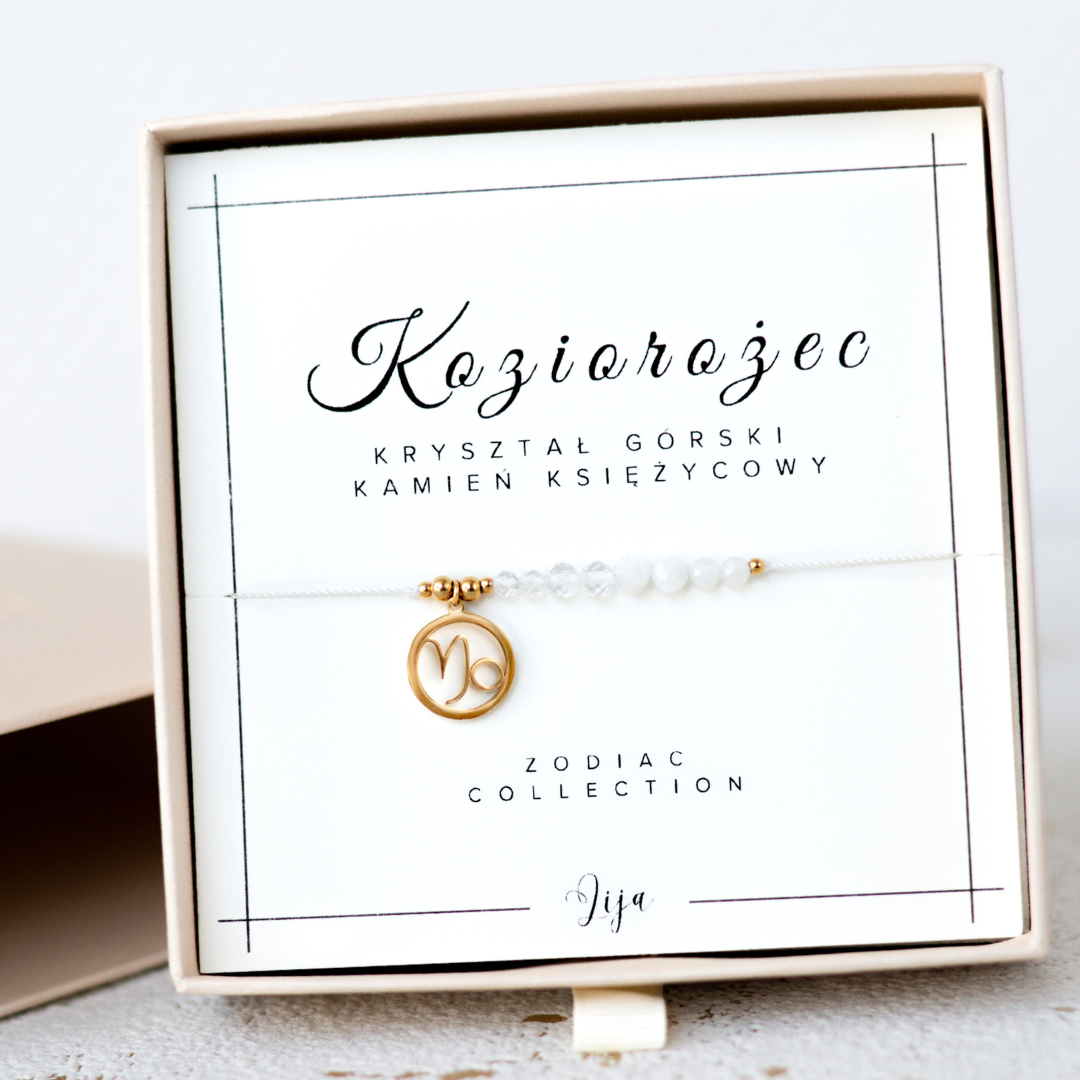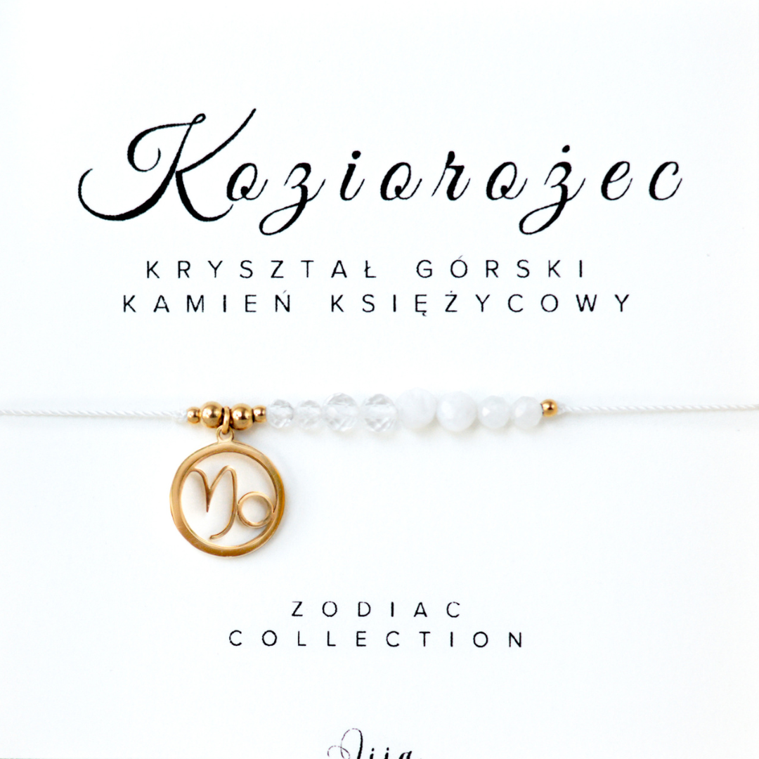 Bransoletka zodiakalna - Koziorożec - Kryształ górski & Kamień księżycowy - znak zodiaku