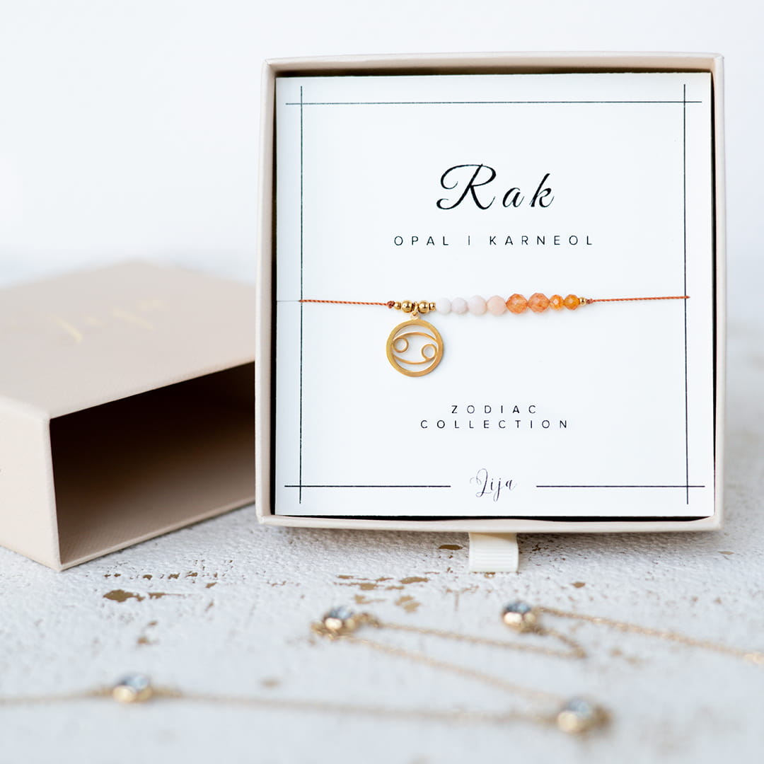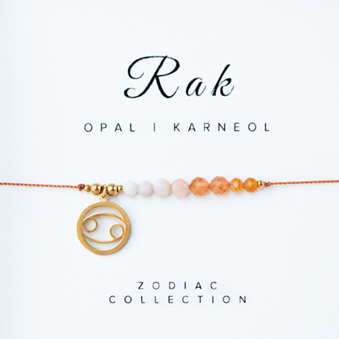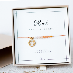Bransoletka zodiakalna Rak - Opal różowy, Karneol - znak zodiaku