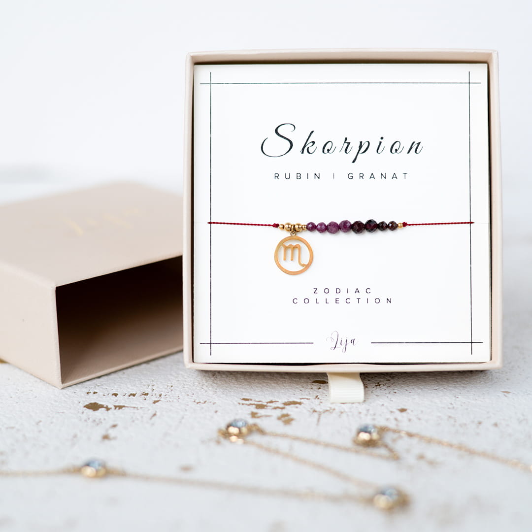 Bransoletka zodiakalna - Skorpion - Rubin, Granat - znak zodiaku