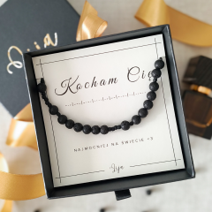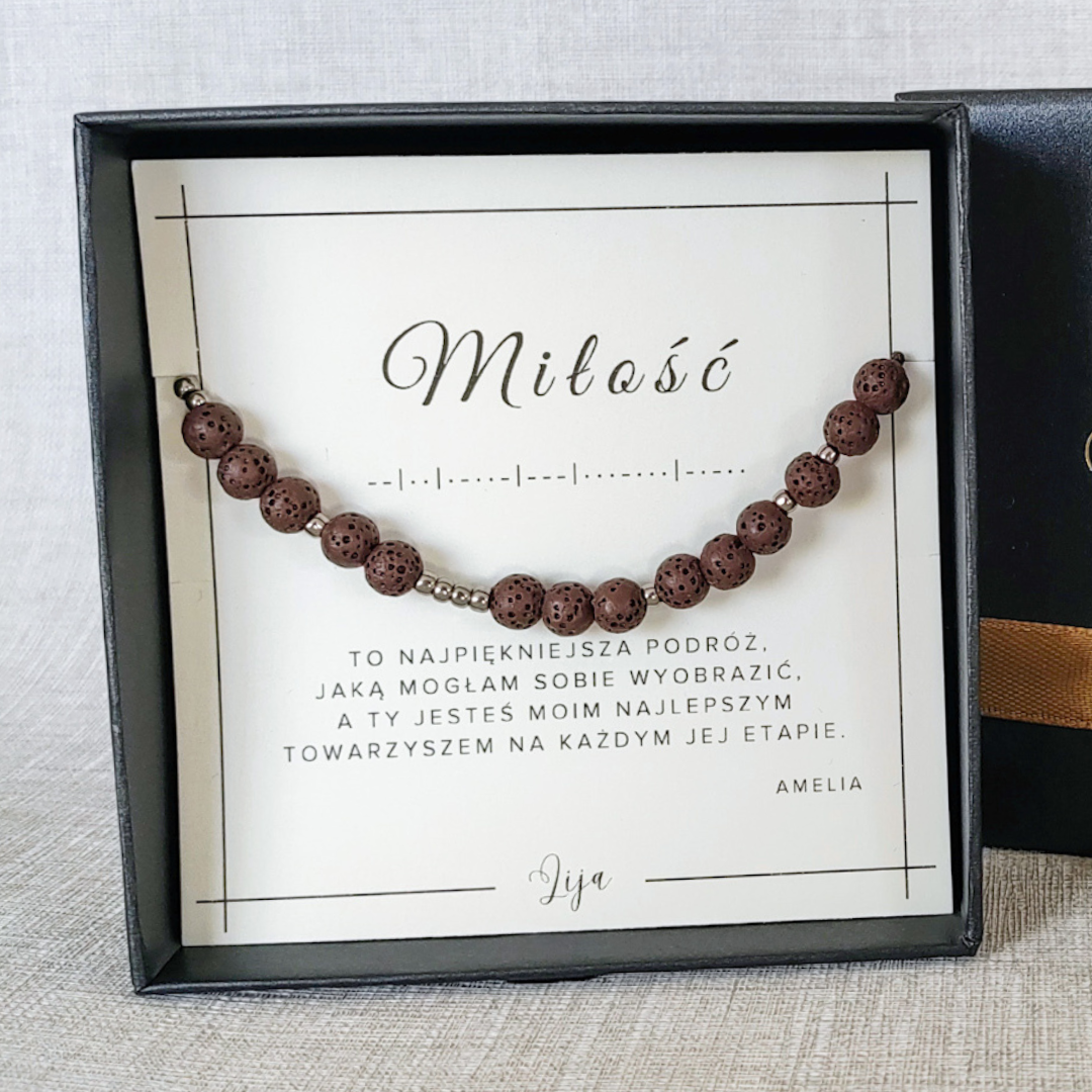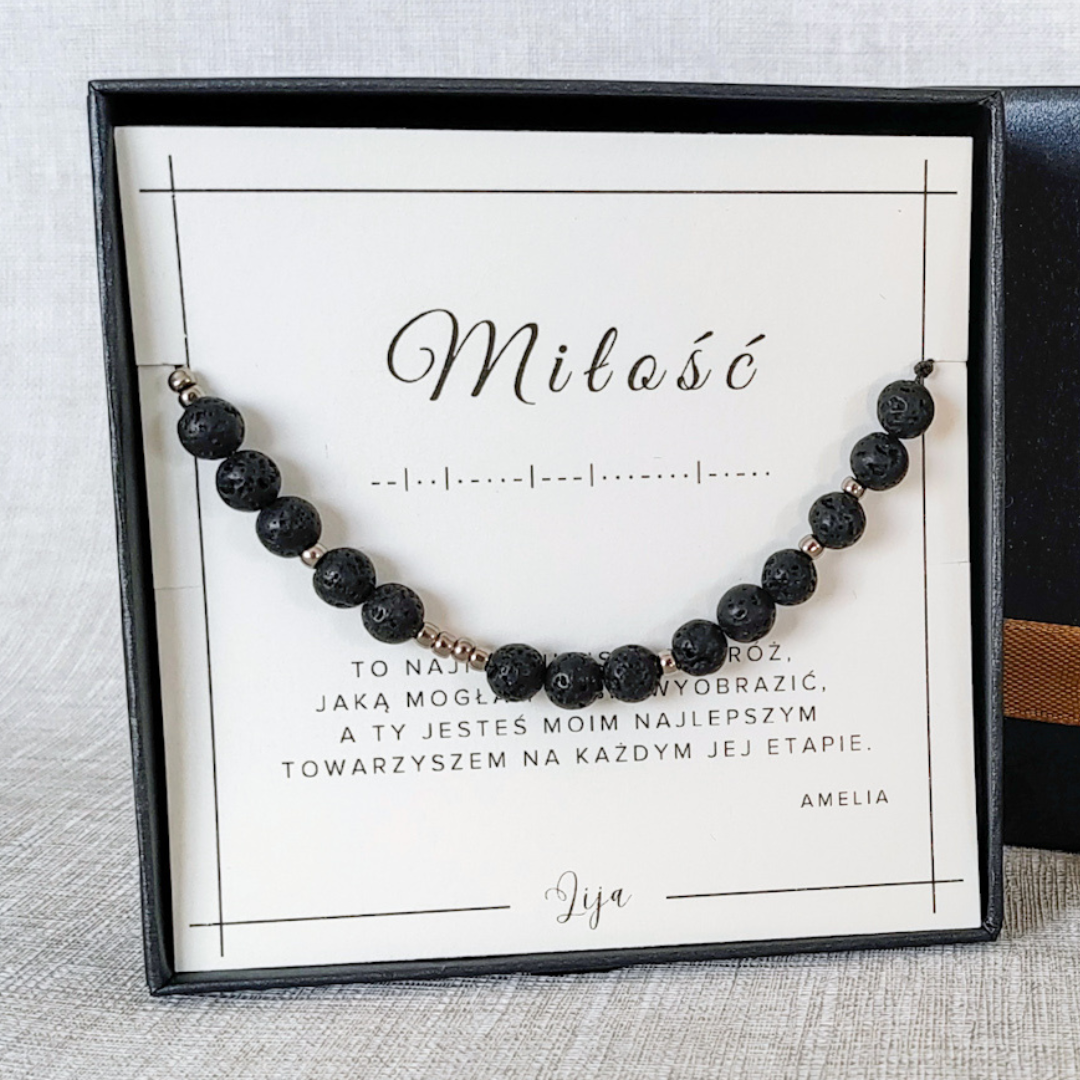 Męska bransoletka - TY WYBIERASZ SŁOWO kodowane alfabetem Morse'a - Lawa wulkaniczna - Dzień Dziadka
