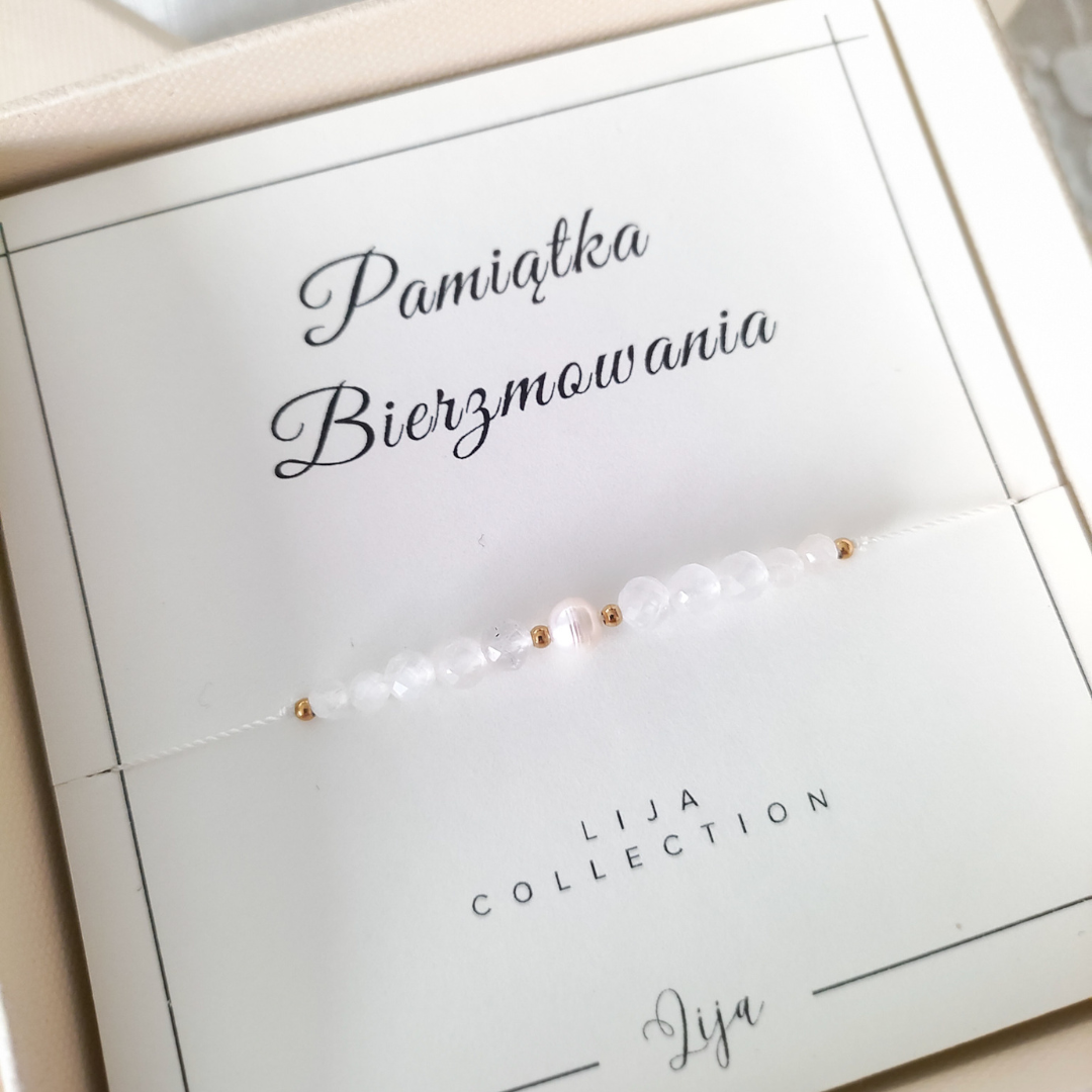 Bransoletki Lija to piękny i symboliczny prezent na Bierzmowanie. Kolekcja z perełką na nici, stworzona specjalnie na tę wyjątkową uroczystość, to delikatny, codzienny dodatek o duchowym znaczeniu.