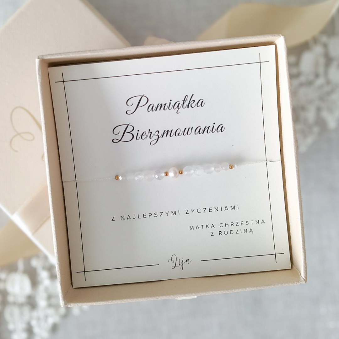 Pamiątka Bierzmowania - Bransoletka z perełką - Kamień księżycowy