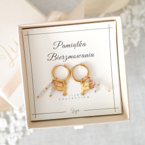 Pamiątka Bierzmowania - Kolczyki z gołąbkiem - Kamień księżycowy