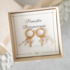 Kolczyki Lija to doskonały prezent na Bierzmowanie – subtelna, elegancka biżuteria o symbolicznym znaczeniu. Kolekcja kółek z krzyżykiem, zaprojektowana specjalnie na tę uroczystość, to delikatny dodatek idealny do noszenia na co dzień. Możesz dowolnie komponować swój styl: nosić cały zestaw (zawieszkę i kamienie) lub wybrać sam krzyżyk albo same kamienie.