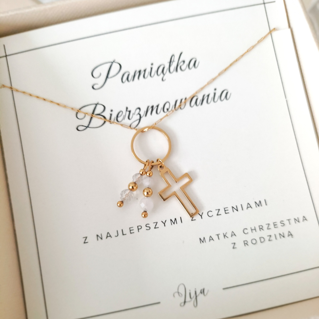 Łańcuszki Lija to idealny prezent na Bierzmowanie – elegancka, symboliczna biżuteria, która towarzyszy na co dzień. Kolekcja z krzyżykiem, stworzona specjalnie z myślą o tej wyjątkowej uroczystości, łączy delikatność, znaczenie duchowe i naturalne piękno kamieni.