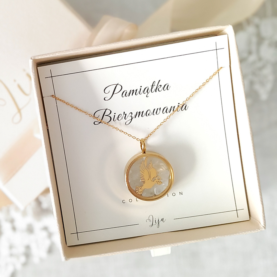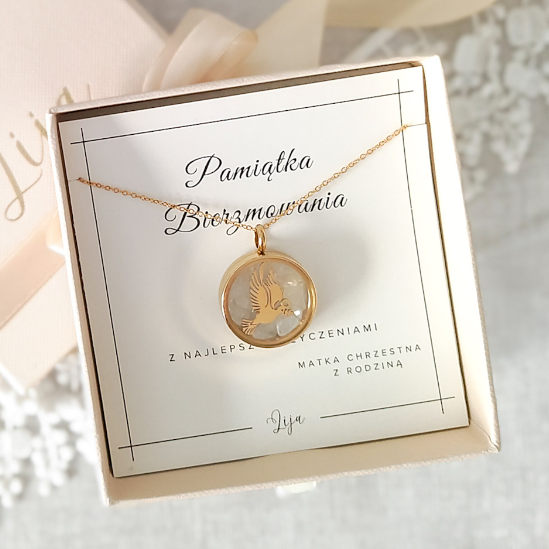 Sekretniki Lija to wyjątkowy prezent na Bierzmowanie – elegancka, symboliczna biżuteria, która może towarzyszyć każdego dnia. Kolekcja z gołąbkiem, zaprojektowana specjalnie na tę ważną uroczystość, łączy subtelność, duchowe znaczenie oraz naturalne piękno kamieni, tworząc pamiątkę o ponadczasowym charakterze.