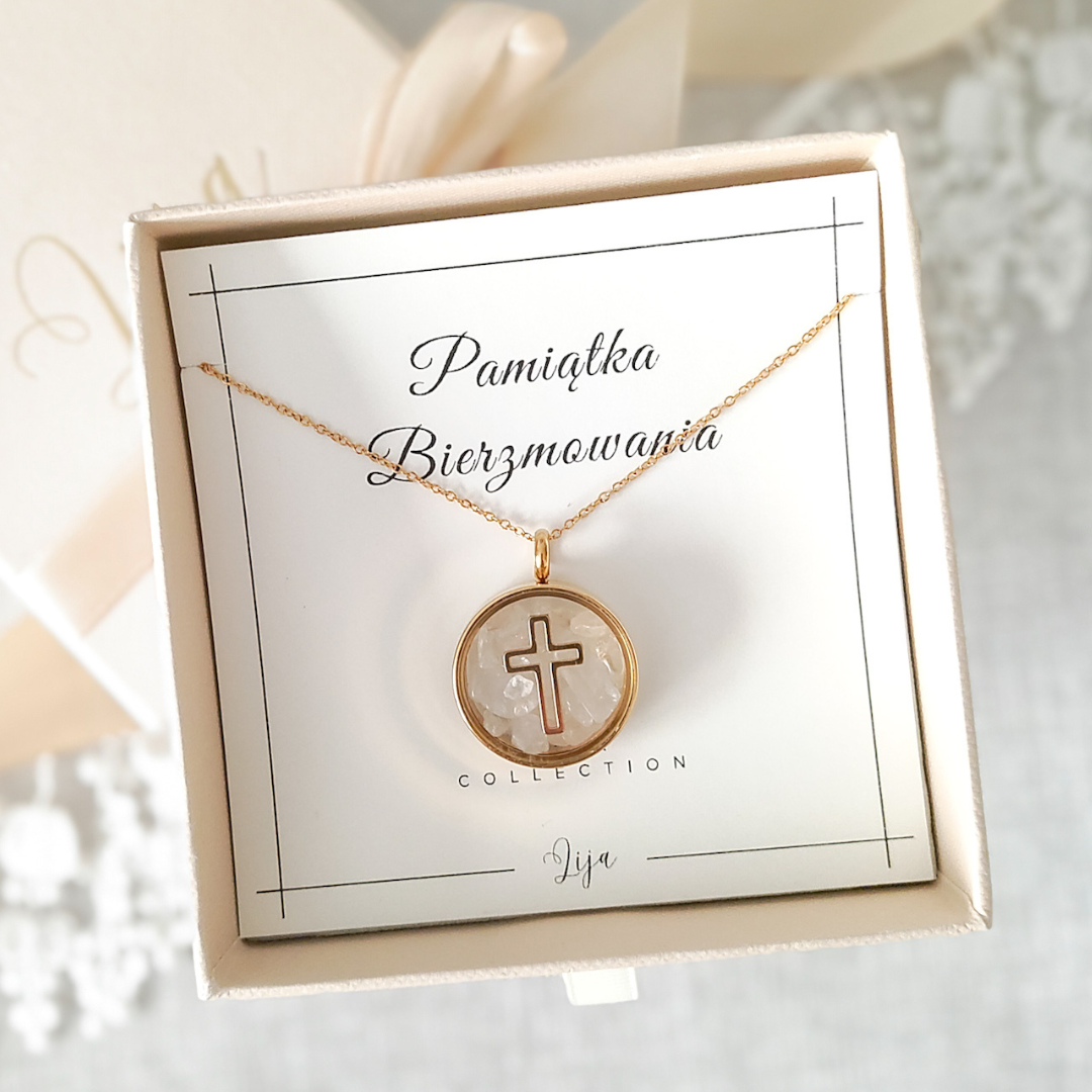 Sekretniki Lija to wyjątkowy prezent na Bierzmowanie – elegancka, symboliczna biżuteria, która może towarzyszyć każdego dnia. Kolekcja z krzyżykiem, zaprojektowana specjalnie na tę ważną uroczystość, łączy subtelność, duchowe znaczenie oraz naturalne piękno kamieni, tworząc pamiątkę o ponadczasowym charakterze.