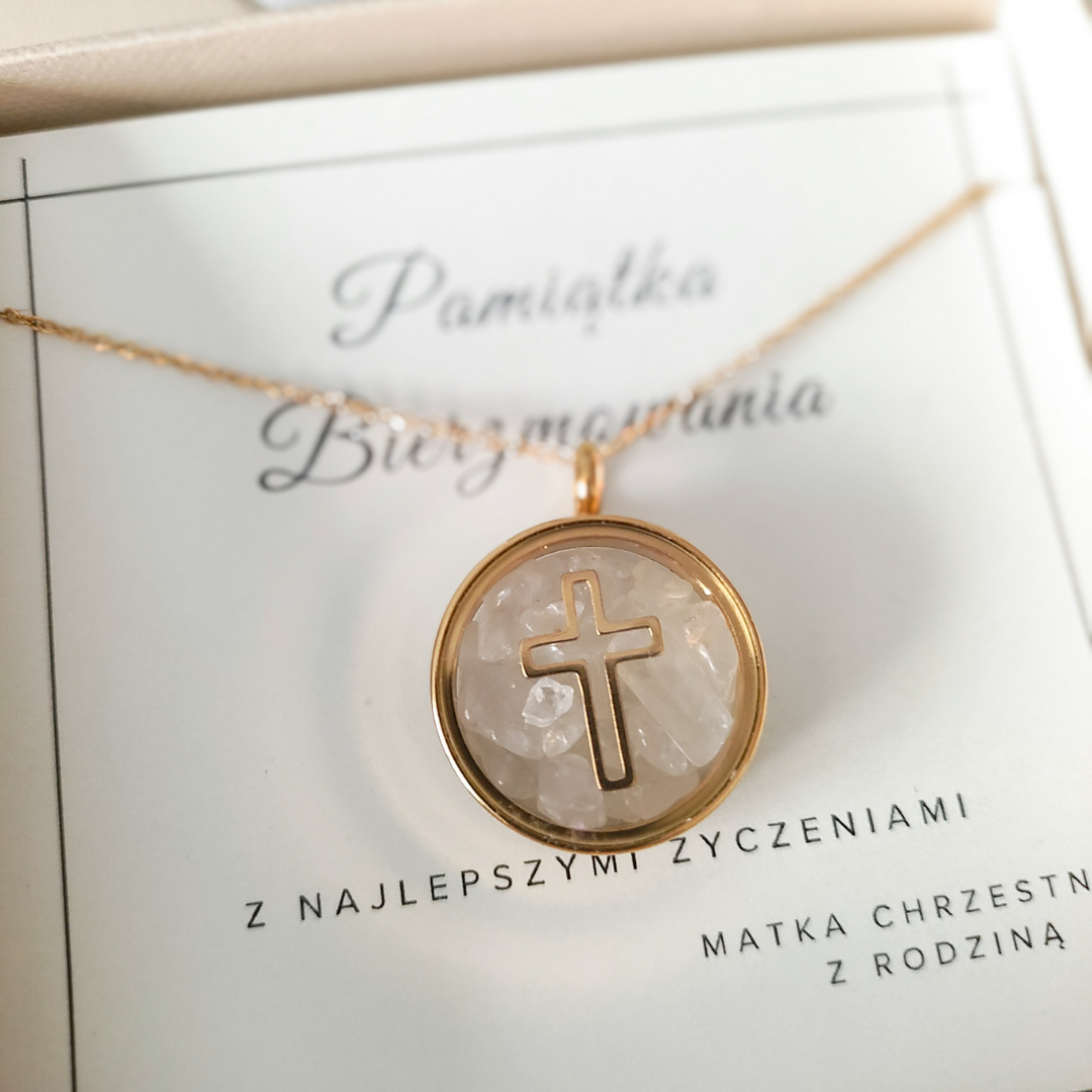 Pamiątka Bierzmowania - Sekretnik z krzyżykiem - Kryształ górski