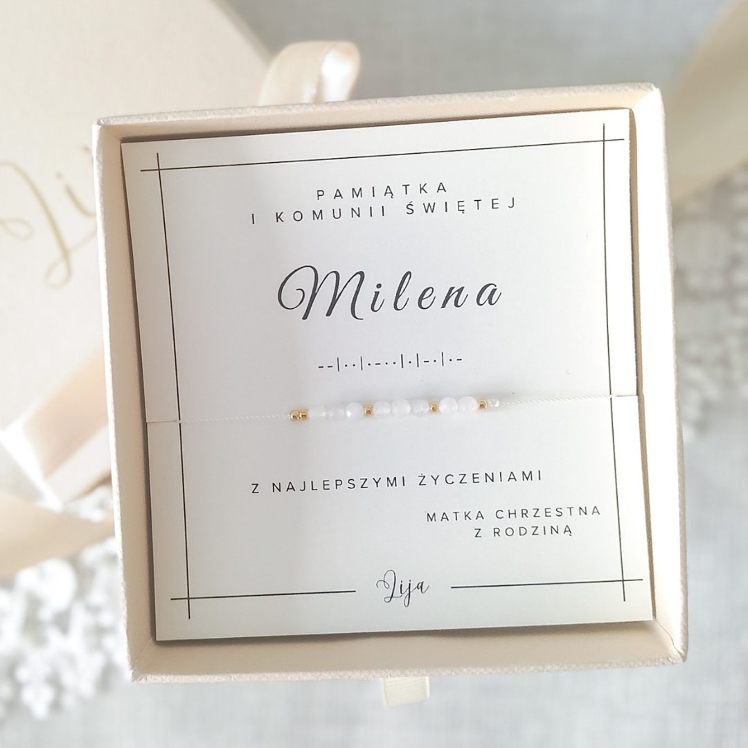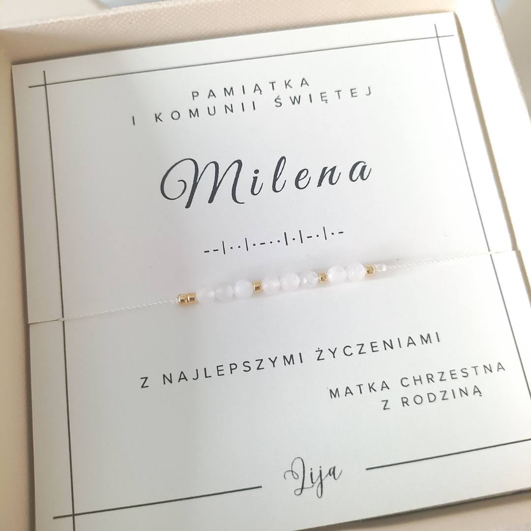 Pamiątka I Komunii Świętej - Bransoletka z imieniem kodowanym Alfabetem Morse'a - kamienie naturalne
