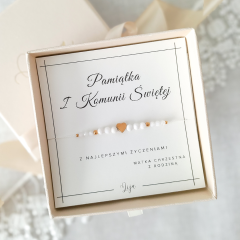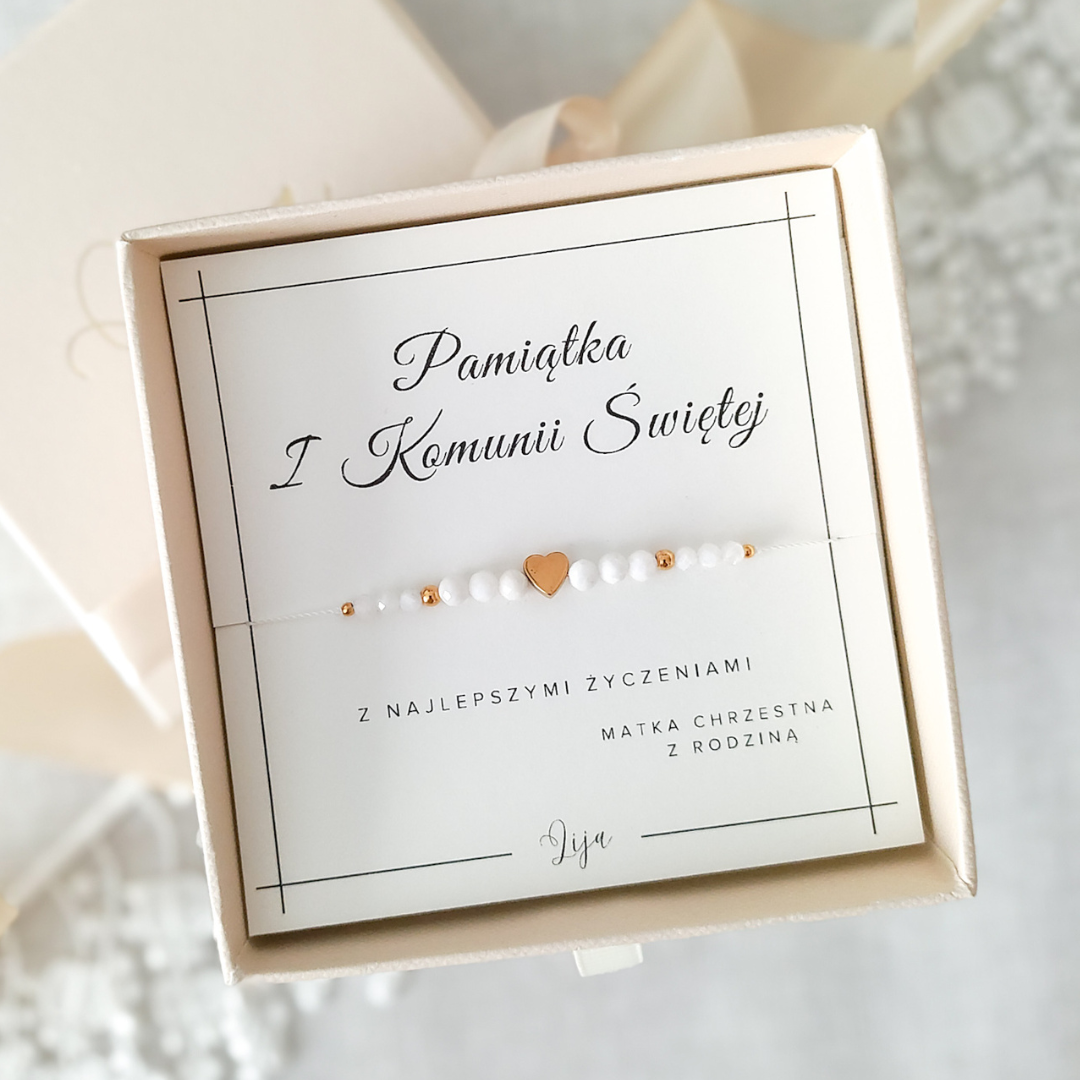 Pamiątka I Komunii Świętej - Bransoletka z serduszkiem - Kamień księżycowy