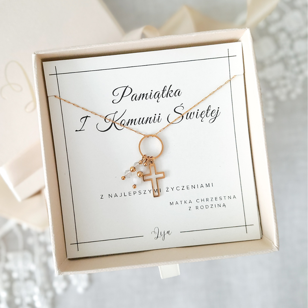 Łańcuszki Lija to idealny prezent na I Komunię Świętą – elegancka, symboliczna biżuteria, która towarzyszy na co dzień. Kolekcja z krzyżykiem, stworzona specjalnie z myślą o tej wyjątkowej uroczystości, łączy delikatność, znaczenie duchowe i naturalne piękno kamieni.