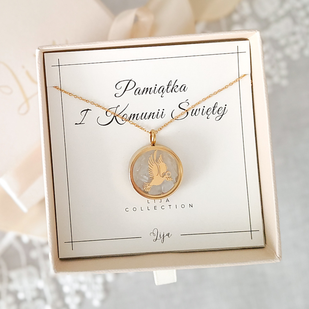 Sekretniki Lija to wyjątkowy prezent na I Komunię Świętą – elegancka, symboliczna biżuteria, która może towarzyszyć każdego dnia. Kolekcja z gołąbkiem, zaprojektowana specjalnie na tę ważną uroczystość, łączy subtelność, duchowe znaczenie oraz naturalne piękno kamieni, tworząc pamiątkę o ponadczasowym charakterze.