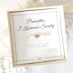 Pamiątka I Komunii Świętej - WYBIERZ KAMIEŃ - Bransoletka z krzyżykiem i kamieniami naturalnymi